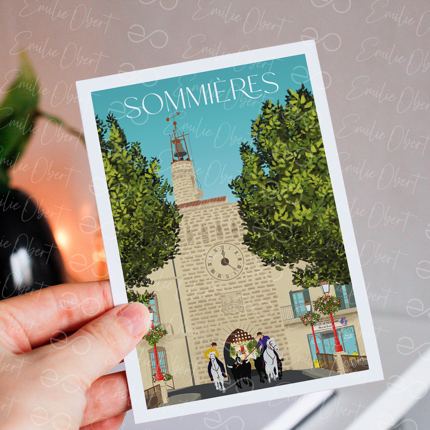 - Style unique : Une illustration minimaliste aux détails soignés, capturant l’authenticité de Sommières.
