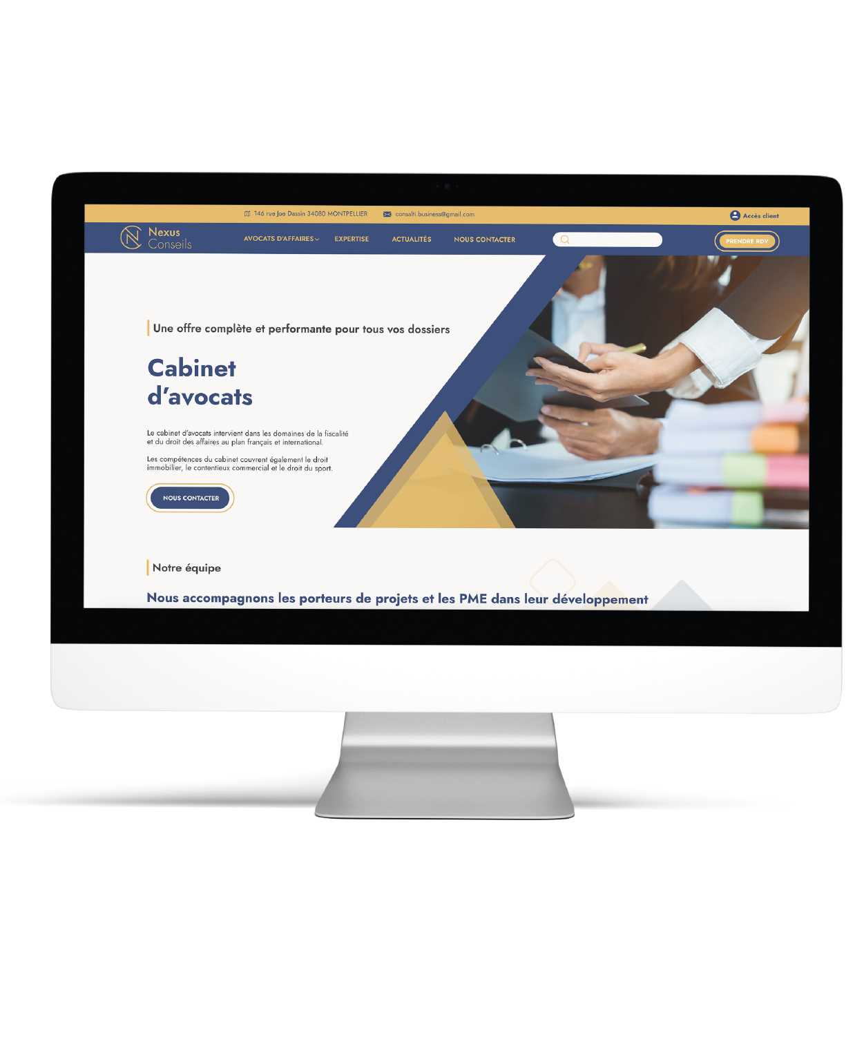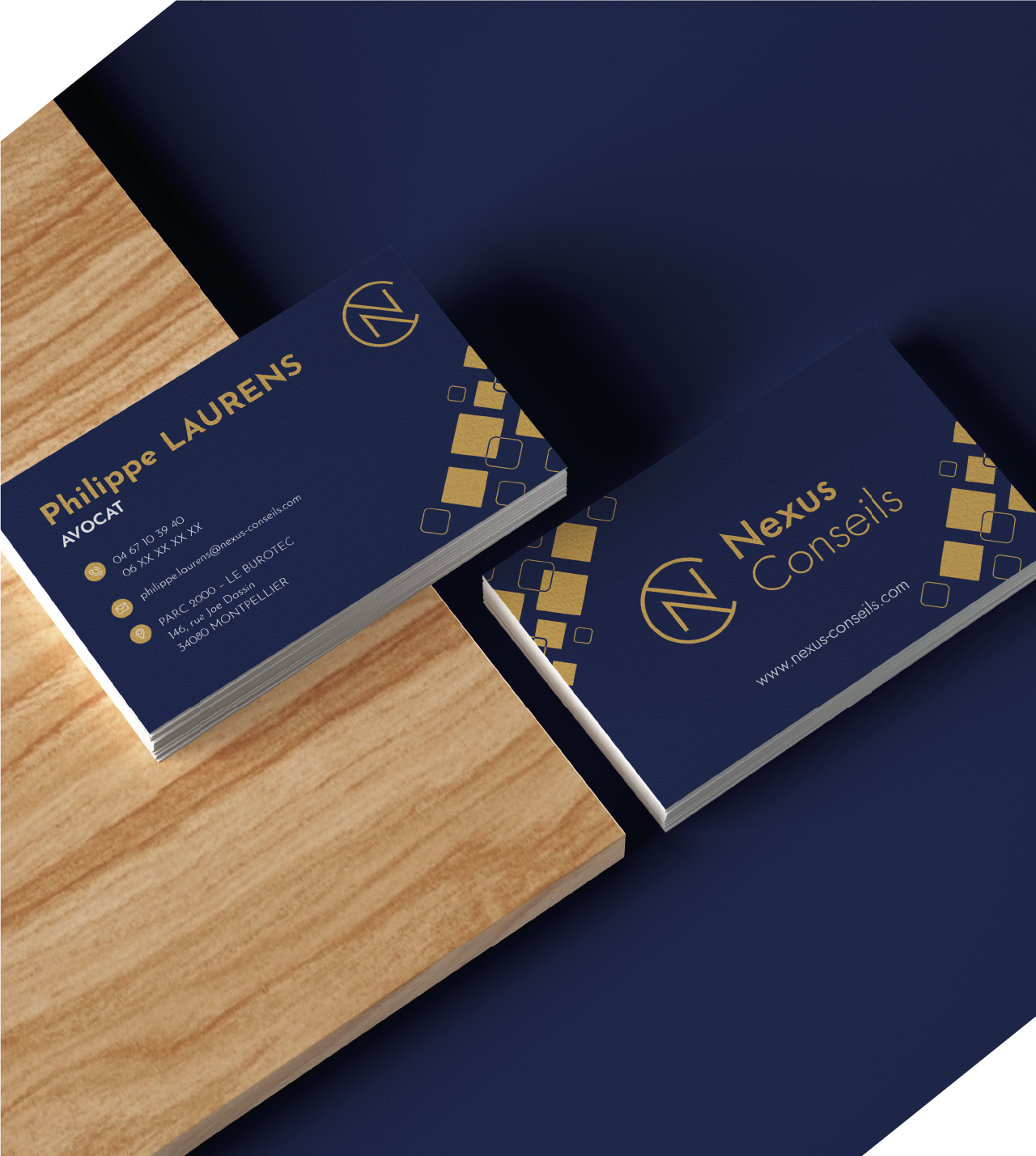 Dans le cadre du projet pour Nexus Conseil, l’objectif était de traduire le professionnalisme et l’expertise à travers un design sobre et élégant, reflétant la rigueur et la précision propres au domaine juridique. La supervision de la réalisation et de l’impression de divers supports de communication a été assurée, notamment les cartes de visite et les signatures email, afin de garantir l’harmonie avec l’image de marque du cabinet. Enfin, la réalisation du site internet a été réalisée, offrant ainsi une vitrine en ligne professionnelle et intuitive pour Nexus Conseil.